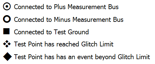 Each test point on each module under test is represented by a column and a specific colour. The height of the column shows the number of Events that have occurred for that specific test point. Mouse-over the column to show the TP's nomenclature and nodal value.
